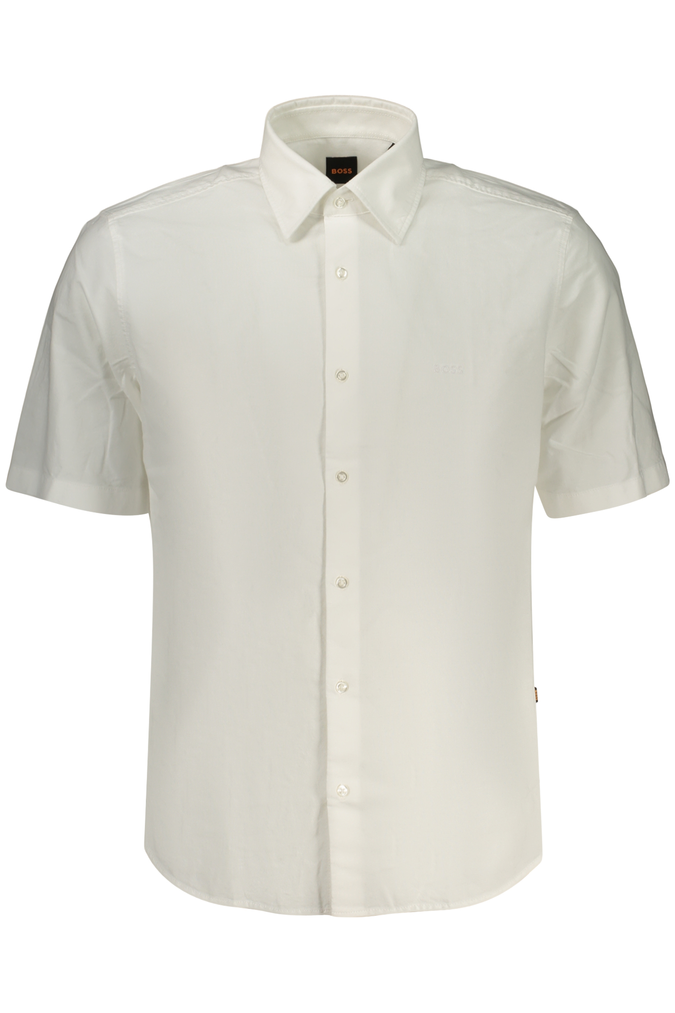 CAMICIA MANICHE CORTE, REGULAR FIT, COLLO ALLA FRANCESE, BOTTONI, RICAMO, LOGO