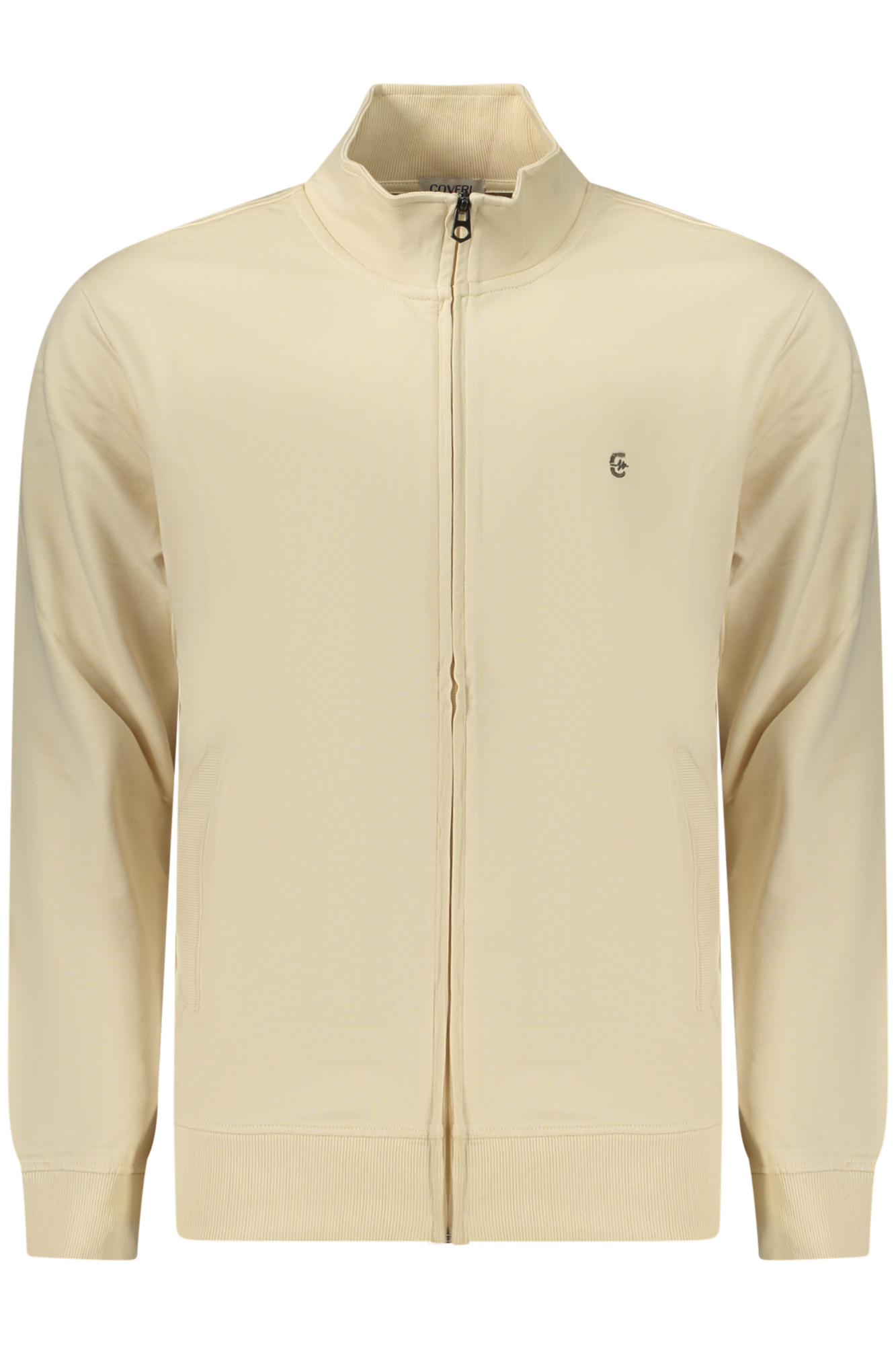 FELPA MANICHE LUNGHE, NON GARZATA, 2 TASCHE, ZIP, RICAMO, LOGO