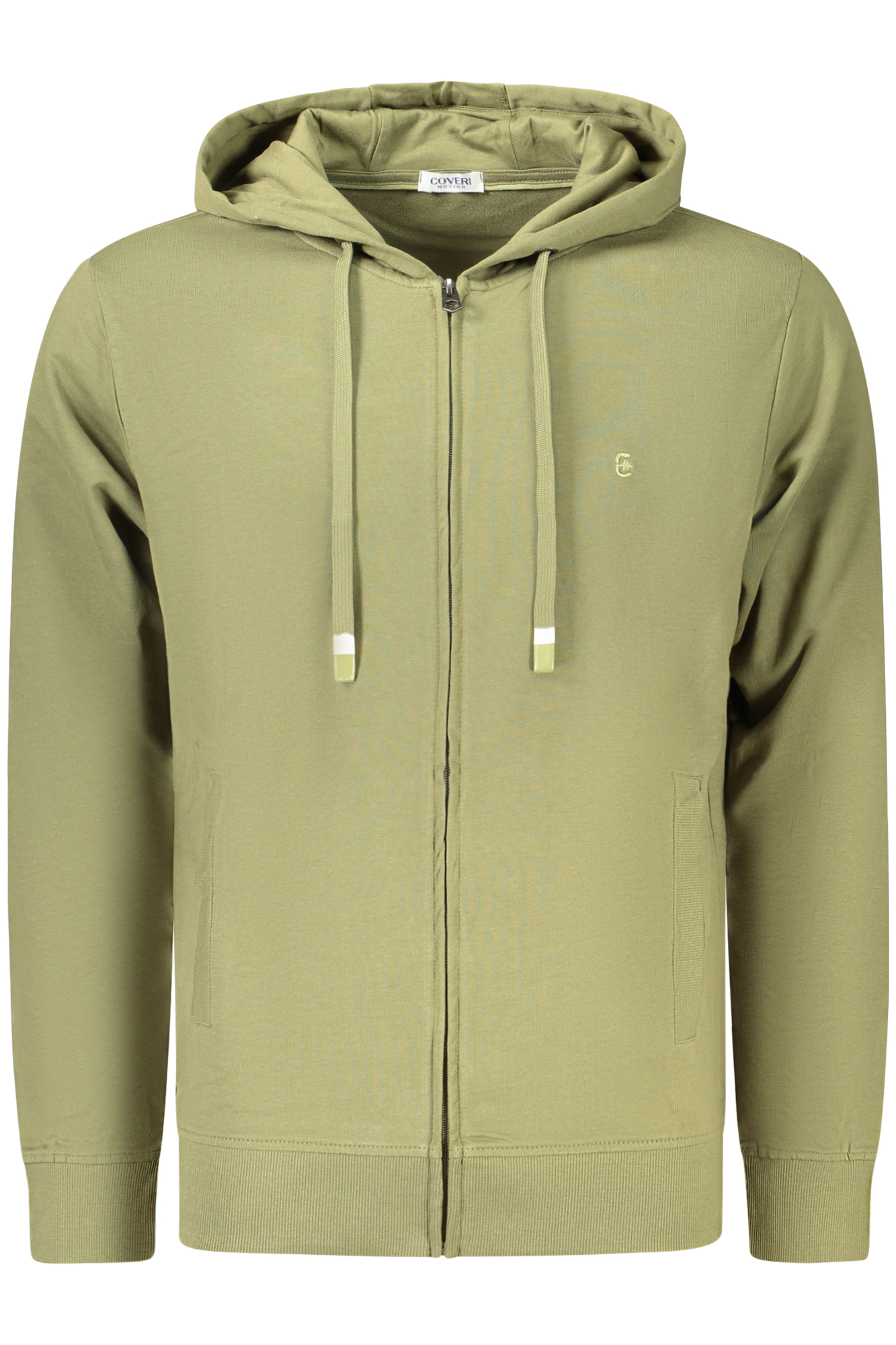FELPA MANICHE LUNGHE CON CAPPUCCIO, NON GARZATA, 2 TASCHE, ZIP, RICAMO, LOGO