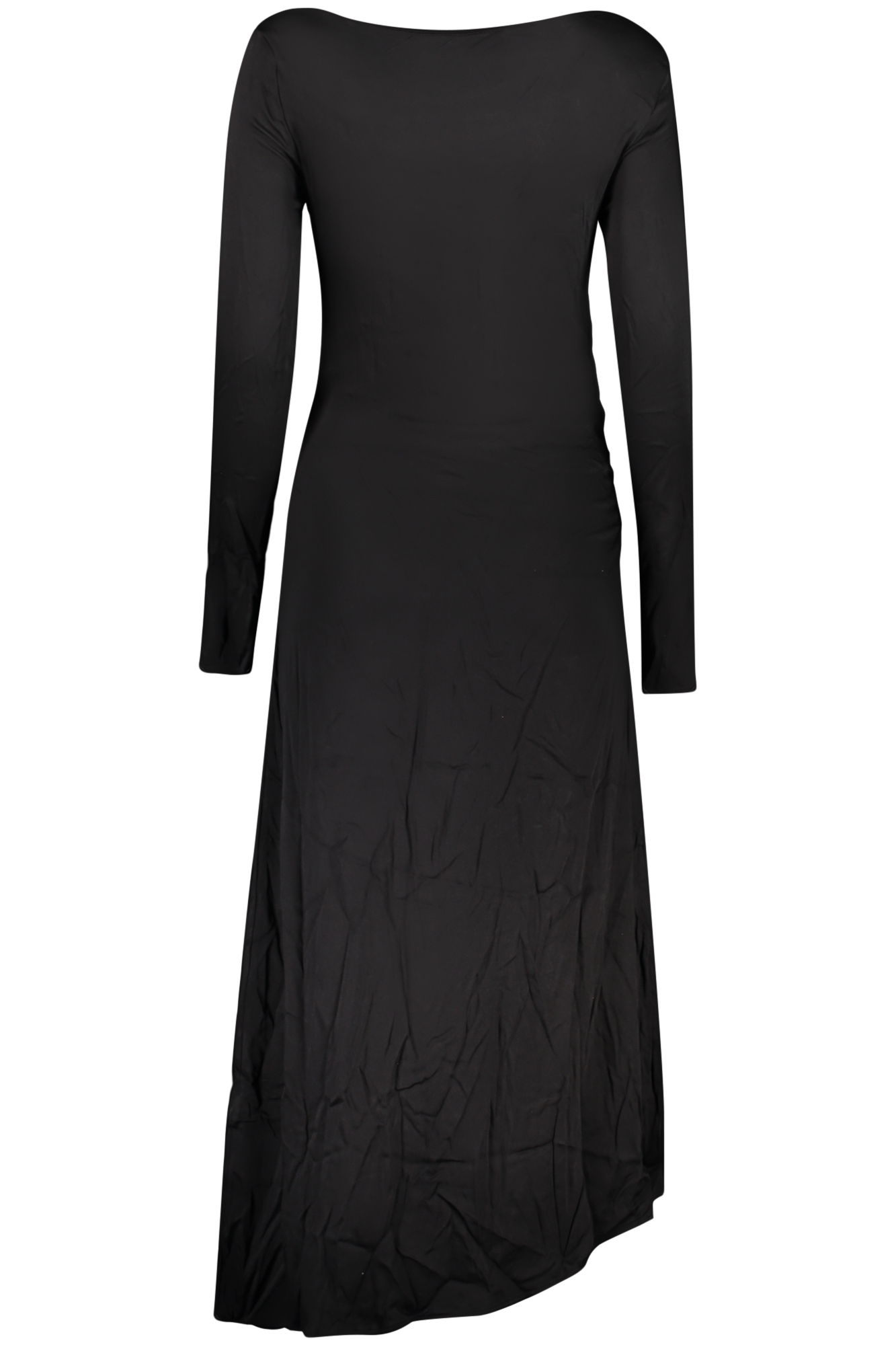 ABITO LUNGO FANTASIA, CAMY, MANICHE LUNGHE, SCOLLO A BARCA, DETTAGLI A CONTRASTO, STAMPA, LOGO
