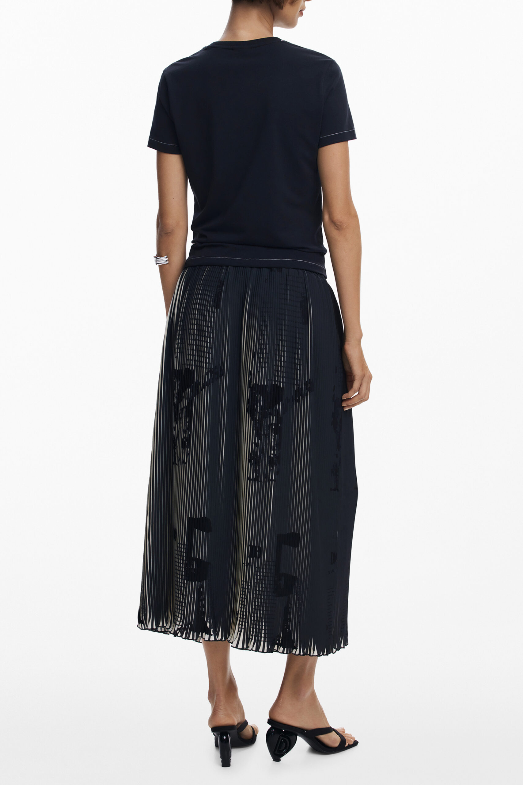 GONNA LUNGA, NEWSPAPERS, ELASTICO IN VITA, PLISETTATA, DETTAGLI A CONTRASTO, LOGO