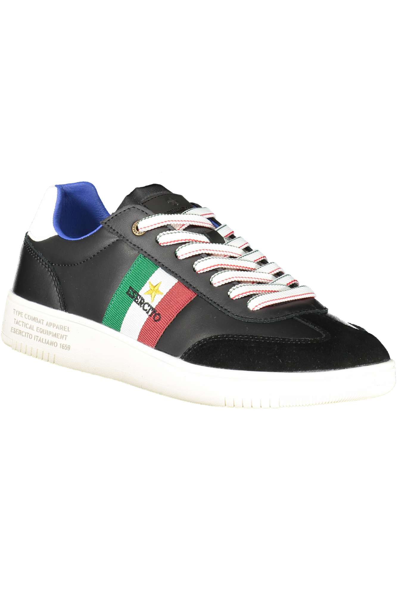 CALZATURA SPORTIVA CON LACCI, ESERCITO NERO, DETTAGLI A CONTRASTO, STAMPA, LOGO