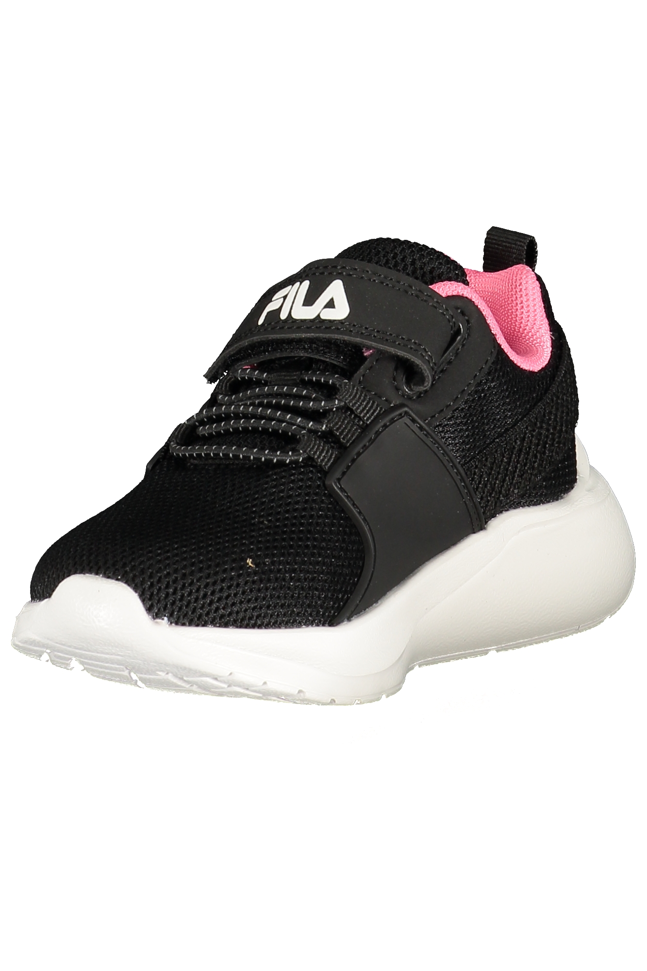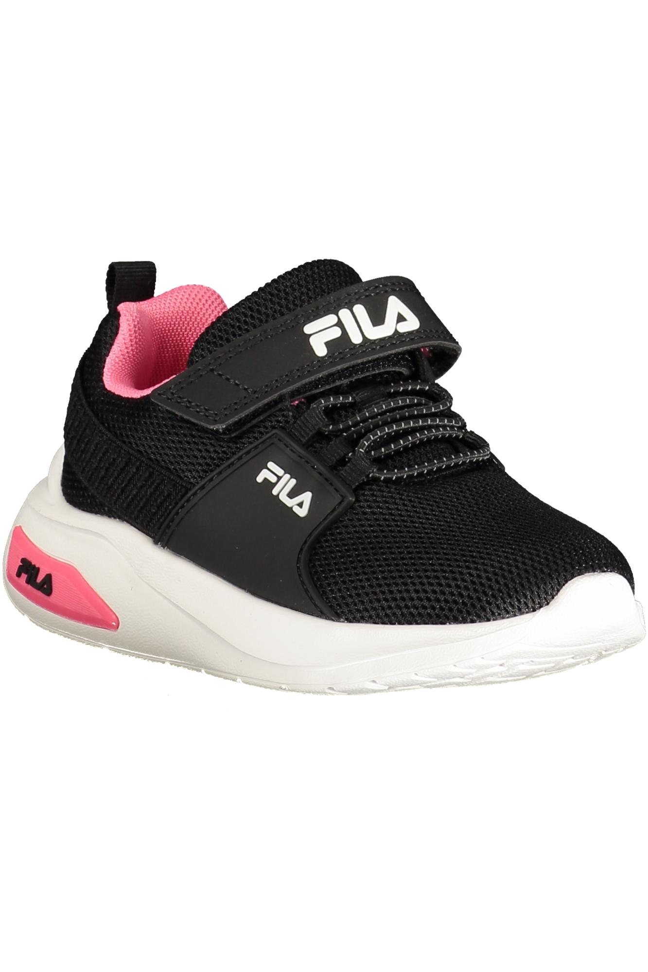 CALZATURA SPORTIVA CON STRAPP ED ELASTICI, DETTAGLI A CONTRASTO IN FUCSIA, PLANTARE REMOVIBILE, STAMPA, LOGO