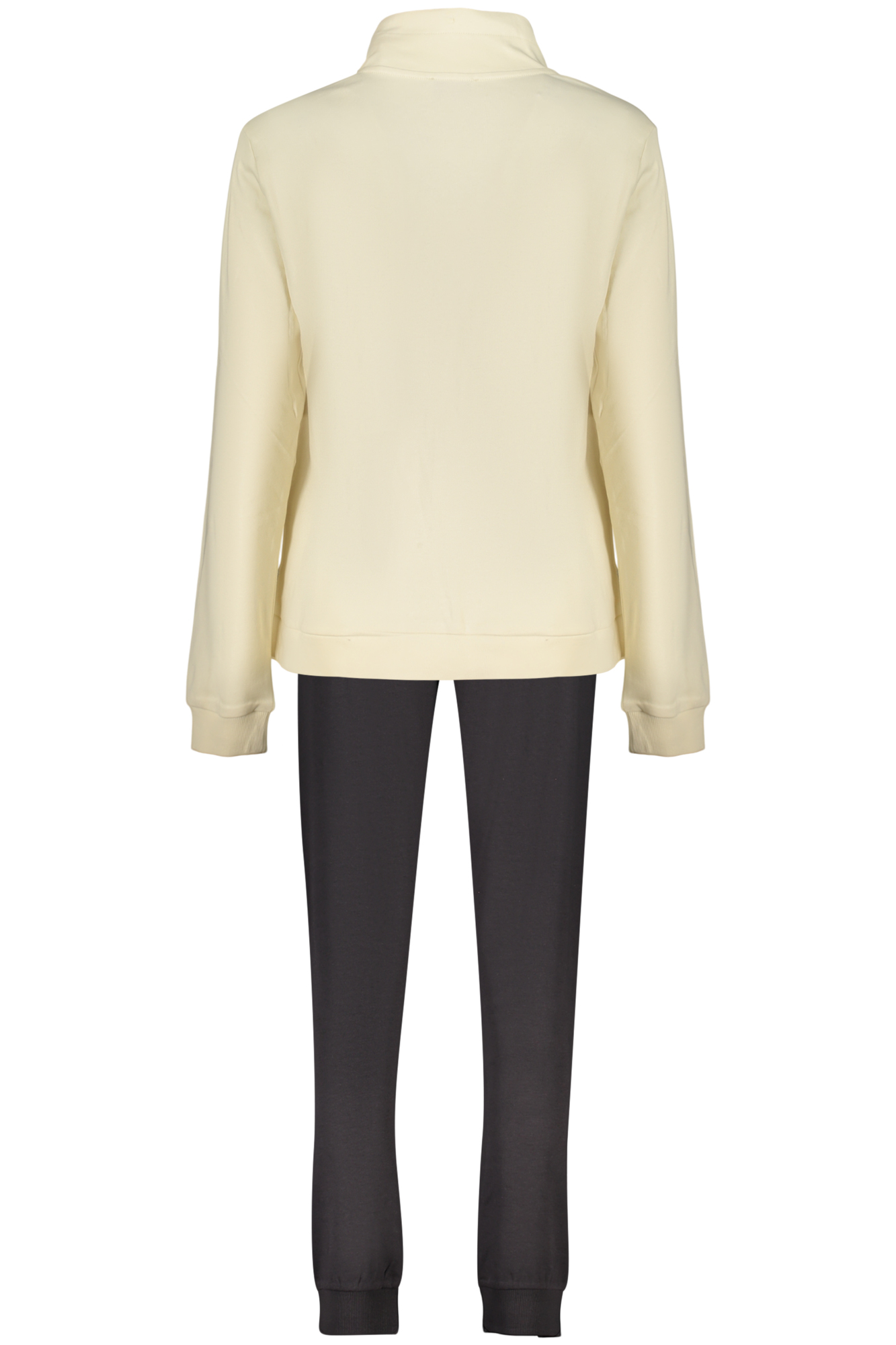 SET FELPA E PANTALONE, FELPA MANICHE LUNGHE BEIGE, 2 TASCHE, ZIP, PANTALONE SPORTIVO NERO, ELASTICO IN VITA CON LACCI, POLSINO ALLA CAVIGLIA, APPLICAZIONE STRASS, STAMPA, LOGO