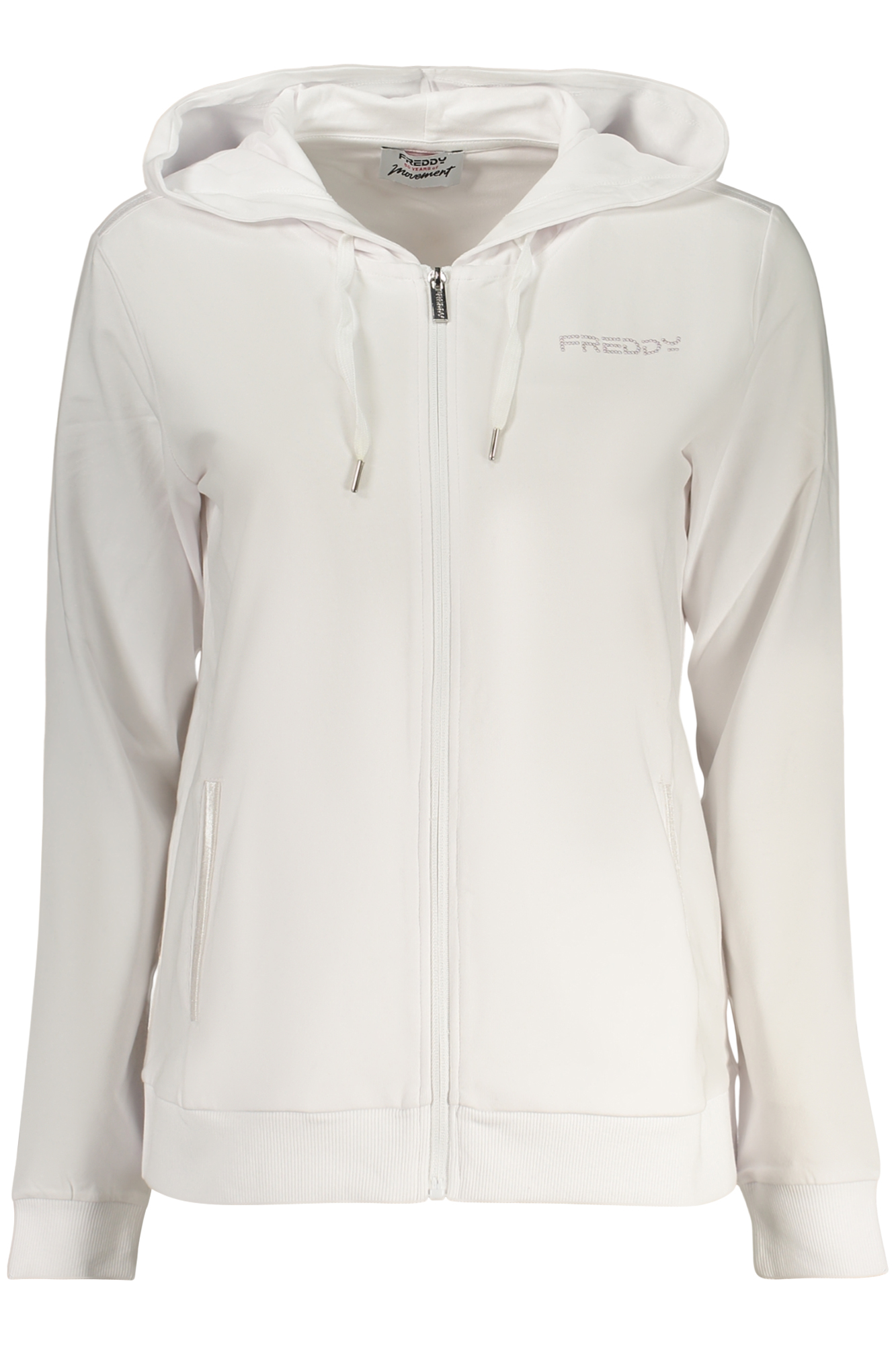 FELPA MANICHE LUNGHE CON CAPPUCCIO, 2 TASCHE, DETTAGLI A CONTRASTO, ZIP, APPLICAZIONE, LOGO