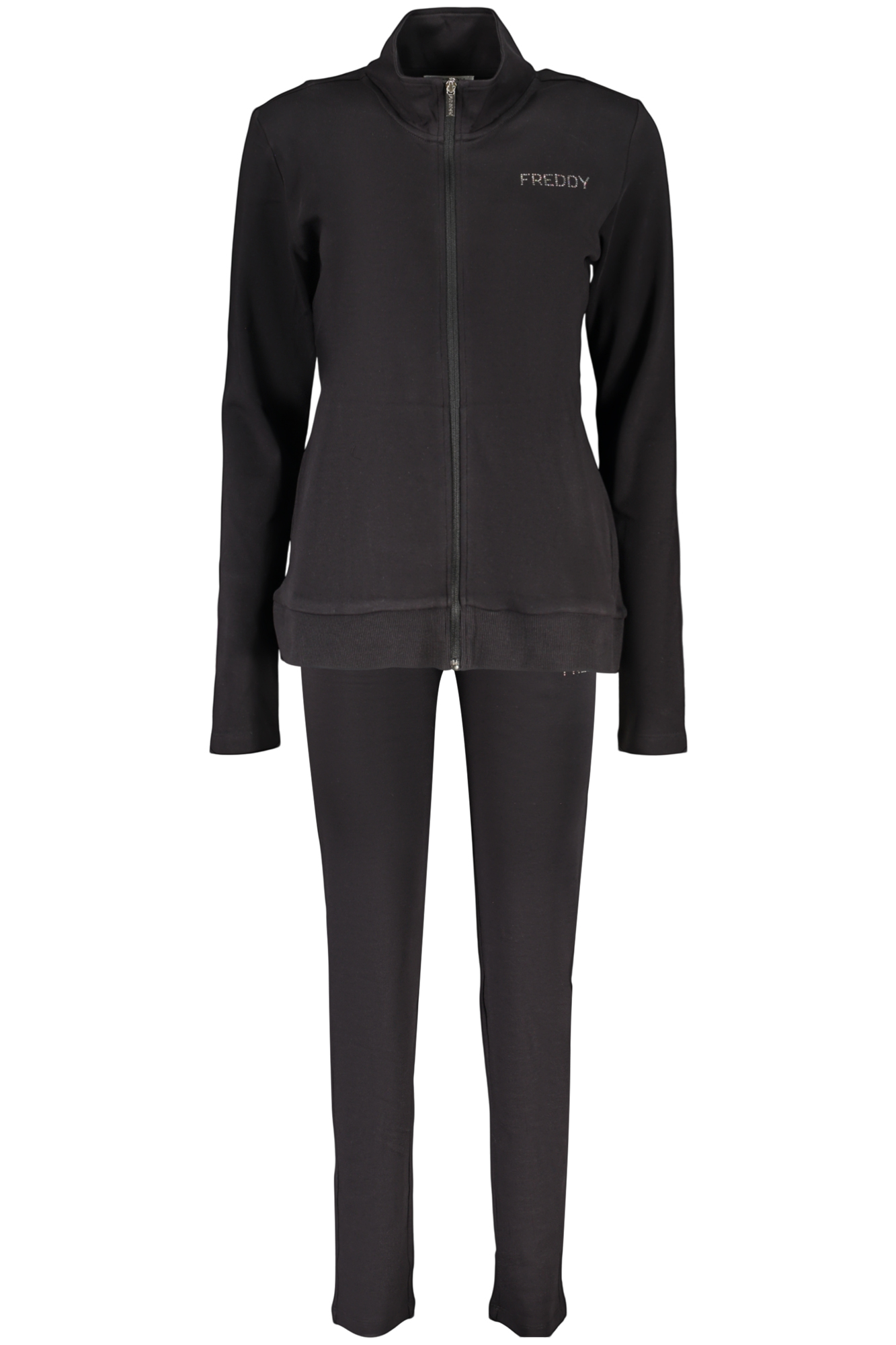 SET FELPA E PANTALONE, FELPA MANICHE LUNGHE, 2 TASCHE, ZIP, PANTALONE SPORTIVO, ELASTICO IN VITA CON LACCI, APPLICAZIONE STRASS, LOGO