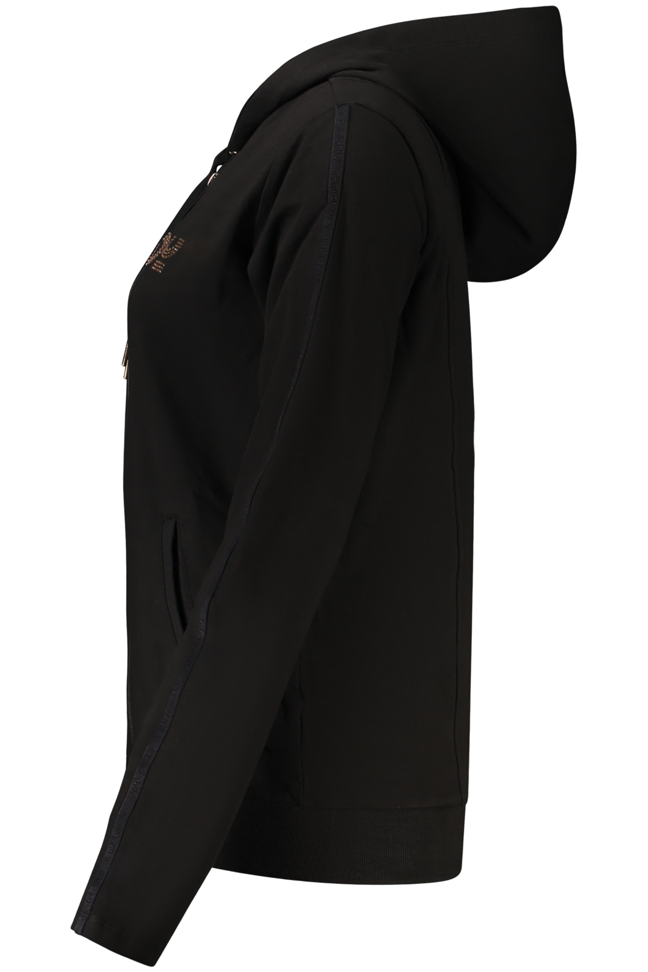 FELPA MANICHE LUNGHE CON CAPPUCCIO, FELPATA, 2 TASCHE, ZIP, APPLICAZIONE STRASS, LOGO