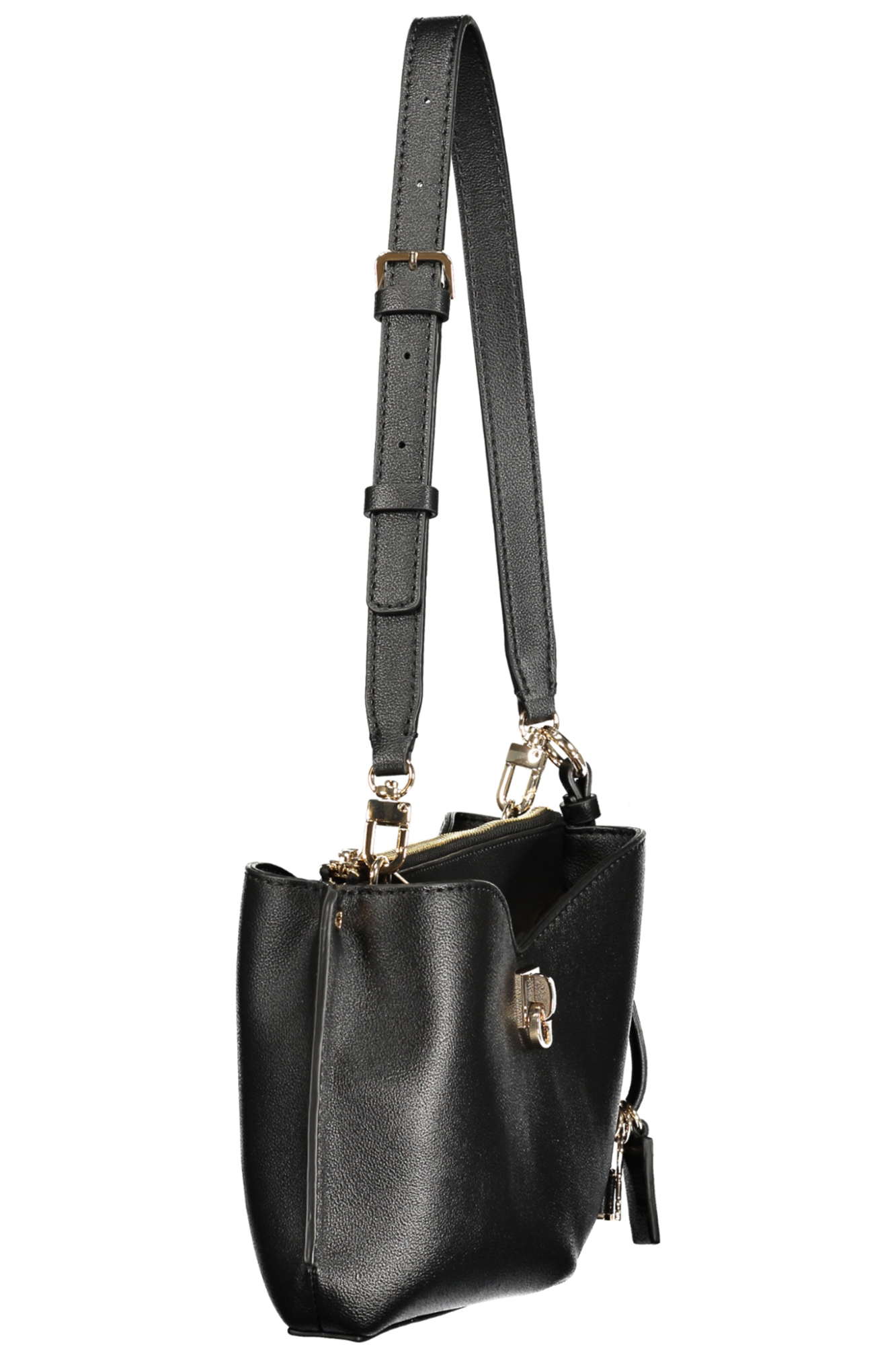 BORSA BIANCA, 1 MANICO A SPALLA REGOLABILE E REMOVIBILE, 2 SCOMPARTI, 1 TASCA CENTRALE, 1 TASCA INTERNA, PORTACHIAVI REMOVIBILE, CHIUSURA CON ZIP E AUTOMATICI, PIEDINI PROTETTIVI, LOGO