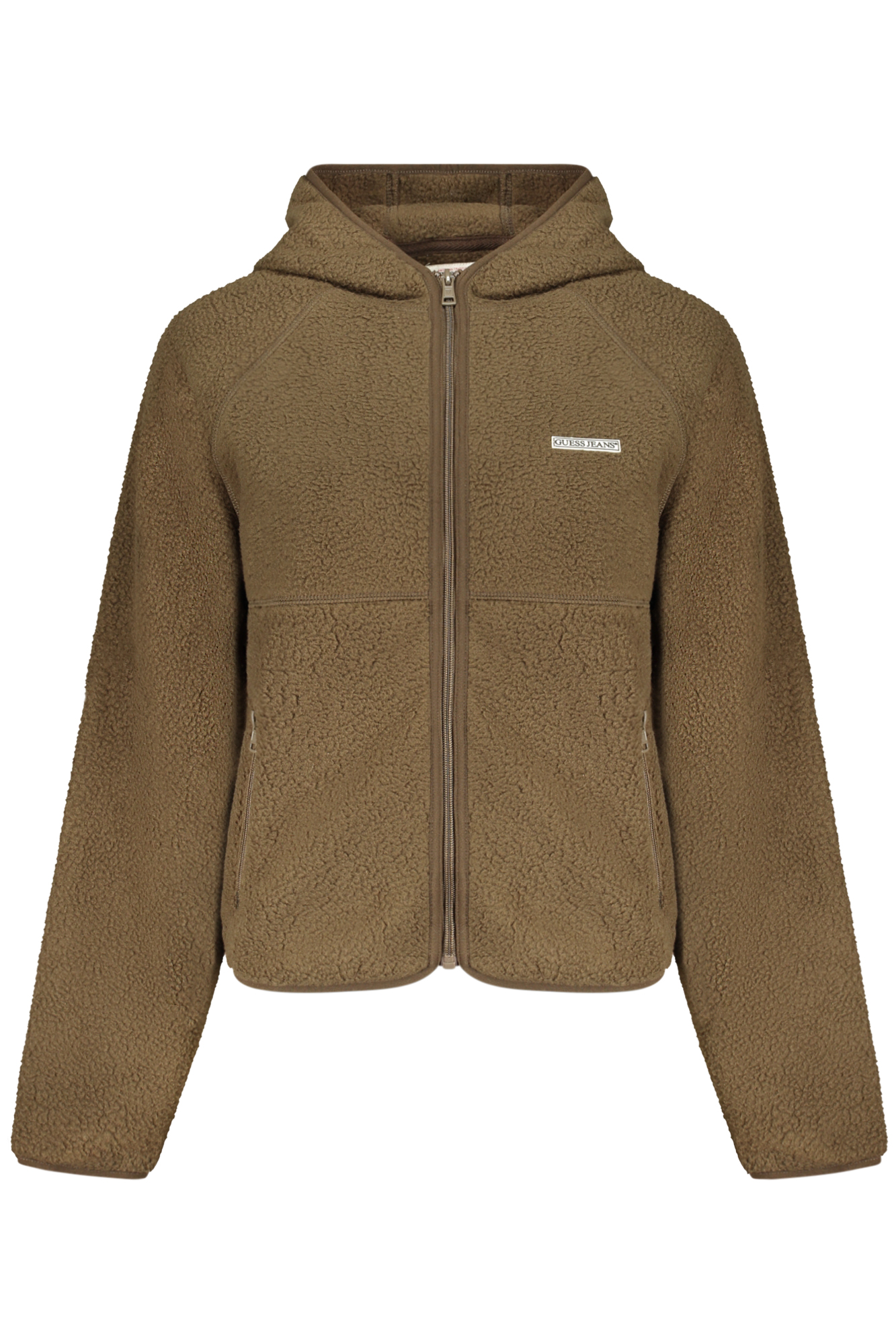 FELPA MANICHE LUNGHE CON CAPPUCCIO, 2 TASCHE ESTERNE, ZIP, APPLICAZIONE, LOGO