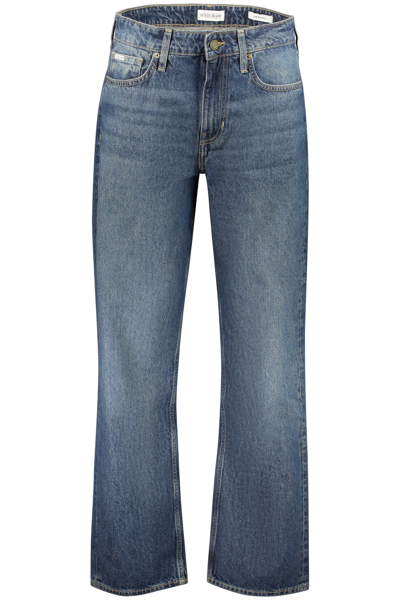JEANS 5 TASCHE, G18 RELAXED, EFFETTO SLAVATO, BOTTONE, ZIP, LOGO