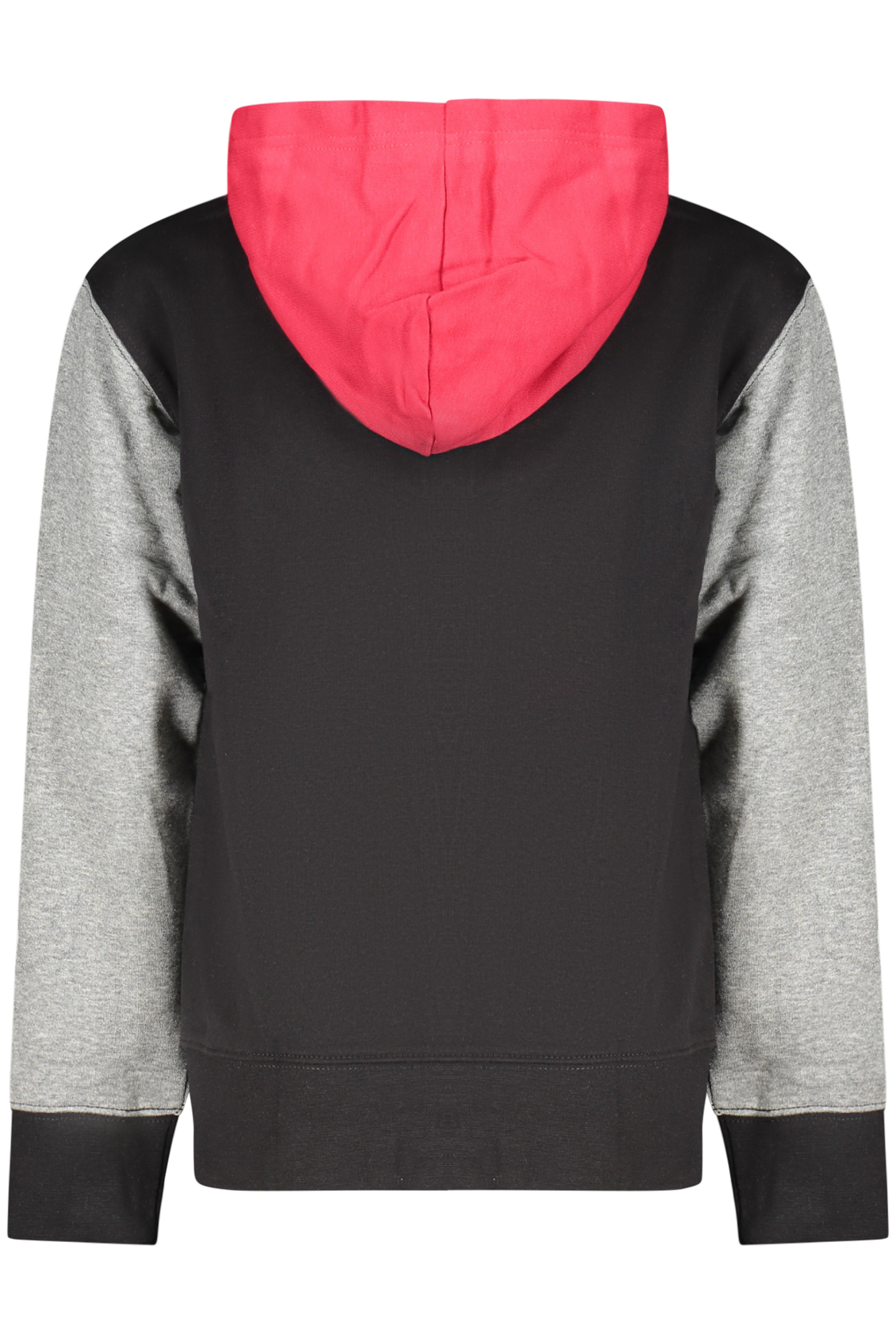 FELPA MANICHE LUNGHE CON CAPPUCCIO, GARZATA, 1 TASCONE CENTRALE, DETTAGLI A CONTRASTO, RICAMO, LOGO