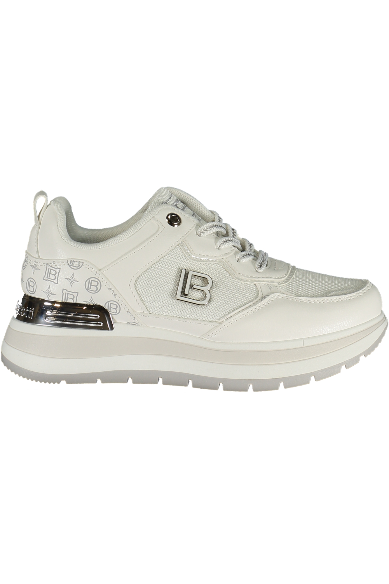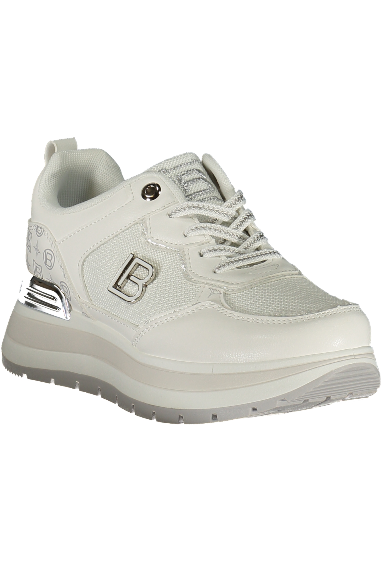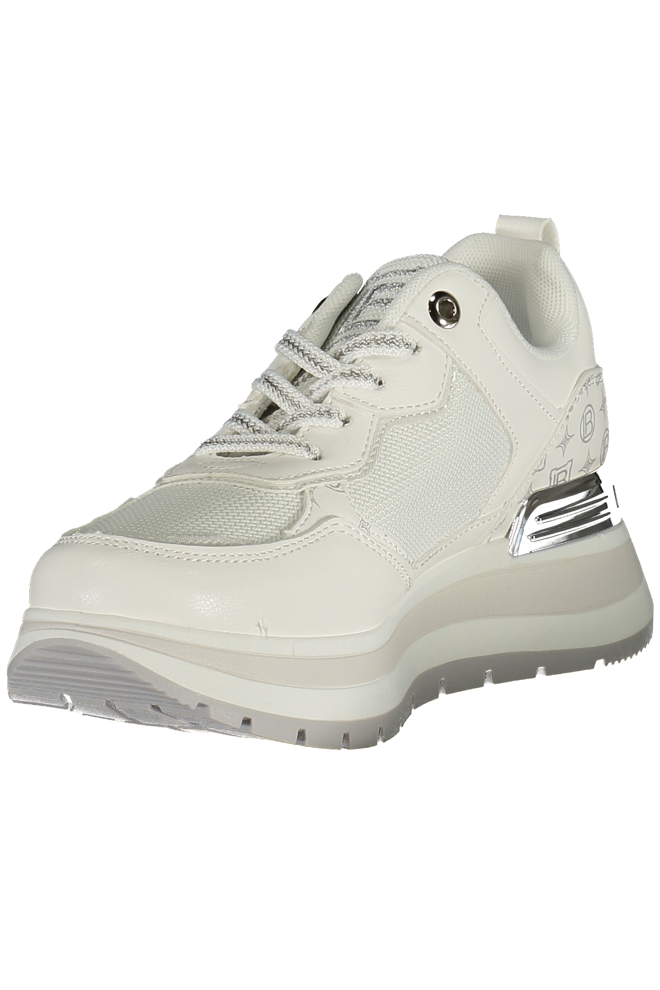 CALZATURA SPORTIVA CON LACCI, DETTAGLI A CONTRASTO IN ARGENTO, PLANTARE REMOVIBILE, APPLICAZIONE, LOGO