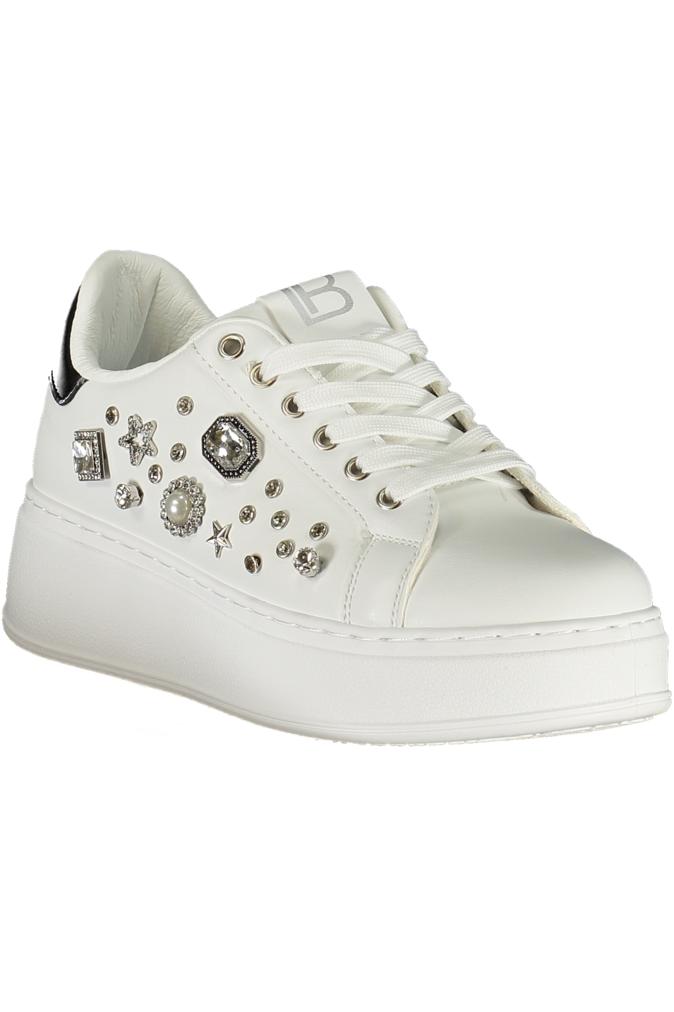 CALZATURA SPORTIVA CON LACCI, DETTAGLI A CONTRASTO IN NERO, APPLICAZIONI STRASS, LOGO