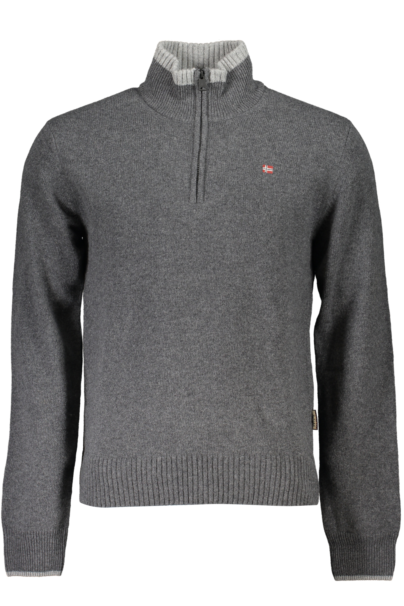 MAGLIONE MANICHE LUNGHE, REGULAR FIT, MEZZA ZIP, DETTAGLI A CONTRASTO, RICAMO, LOGO