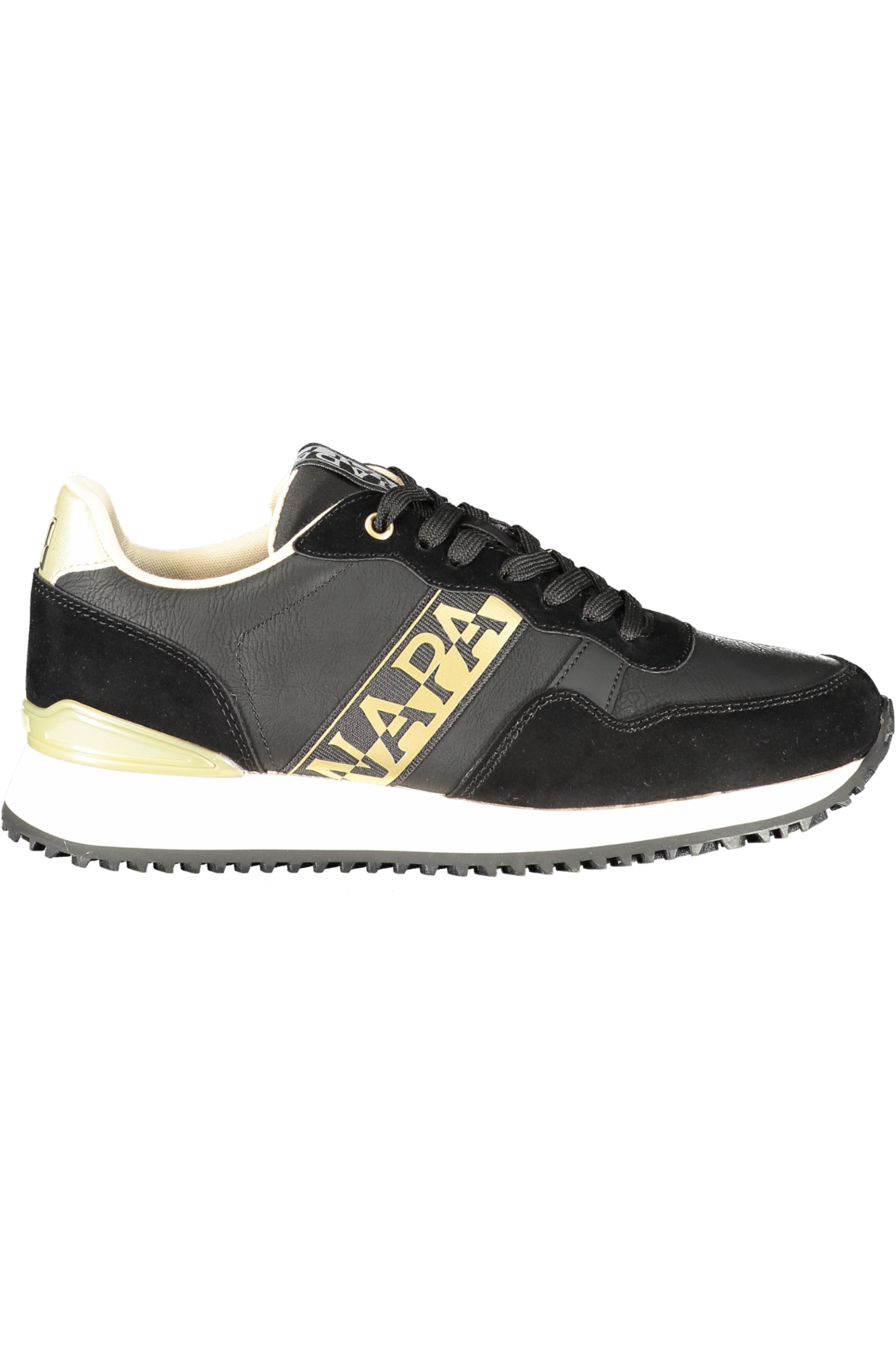 CALZATURA SPORTIVA CON LACCI, DOPPIO LACCIO A CONTRASTO, DETTAGLI A CONTRASTO IN ORO, PLANTARE REMOVIBILE, STAMPA, LOGO