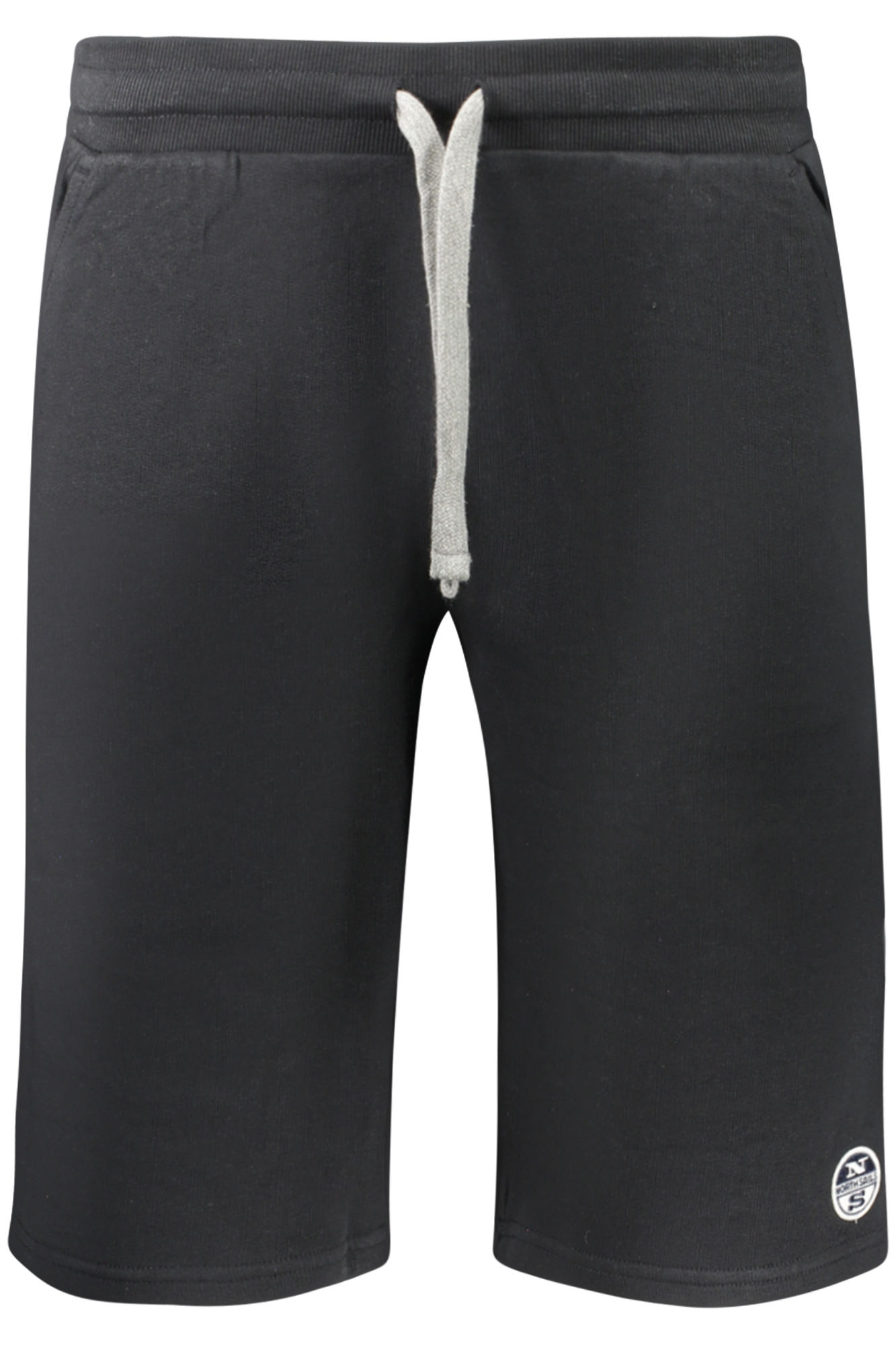 PANTALONE CORTO SPORTIVO, GARZATO, ELATICO IN VITA CON LACCI, 3 TASCHE, APPLICAZIONE, LOGO