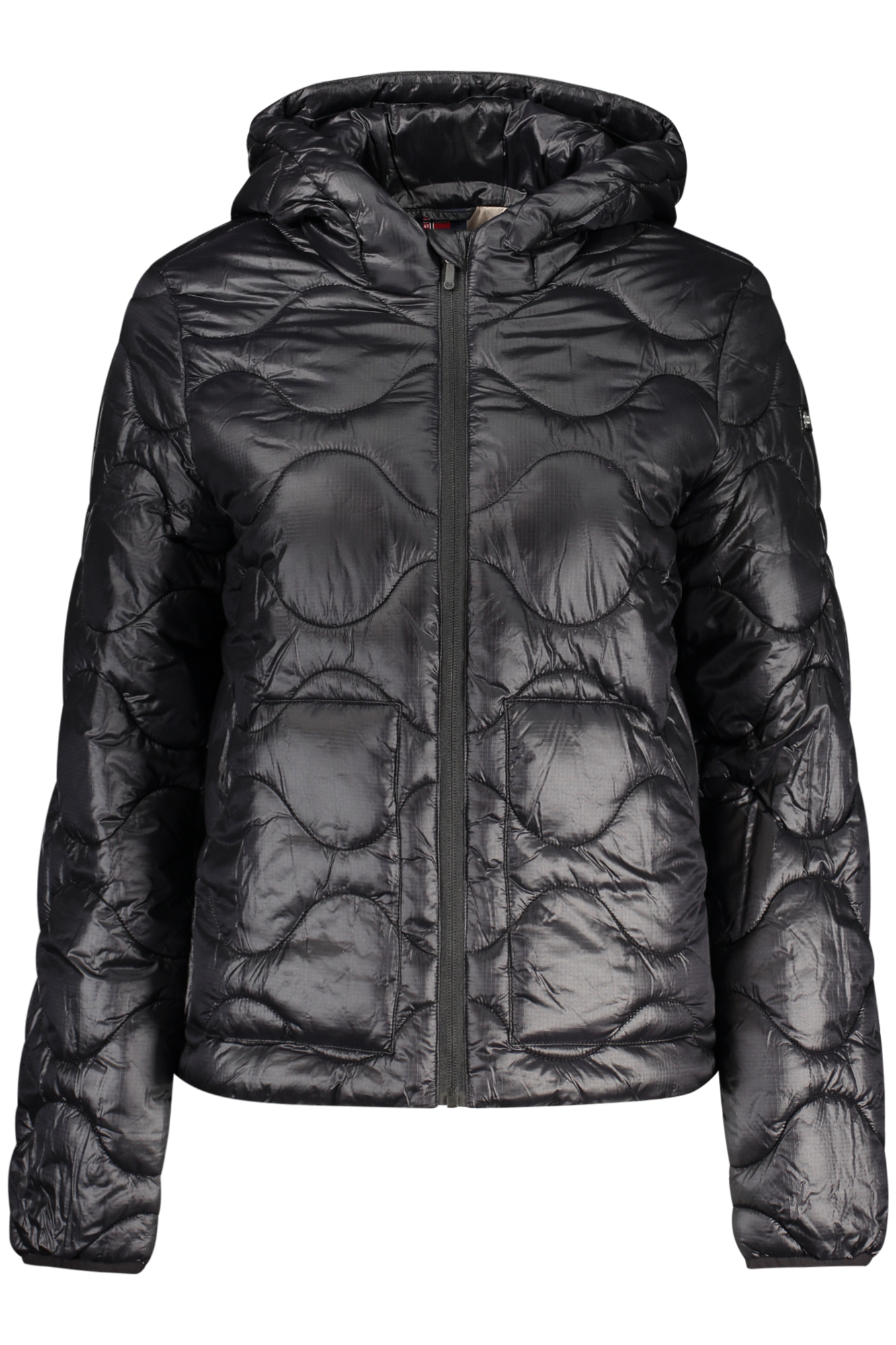 GIUBBOTTO MANICHE LUNGHE CON CAPPUCCIO, 2 TASCHE ESTERNE, DETTAGLI A CONTRASTO, ZIP, APPLICAZIONE, LOGO