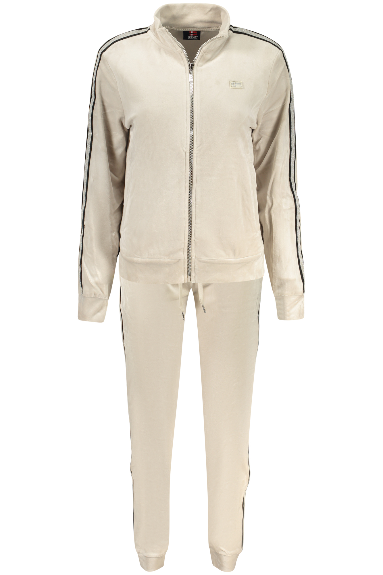 TUTA SPORTIVA, FELPA MANICHE LUNGHE, 2 TASCHE, FULL ZIP, PANTALONE, ELASTICO IN VITA CON LACCI, 2 TASCHE, POLSINO ALLA CAVIGLIA, DETTAGLI A CONTRASTO, APPLICAZIONE, LOGO