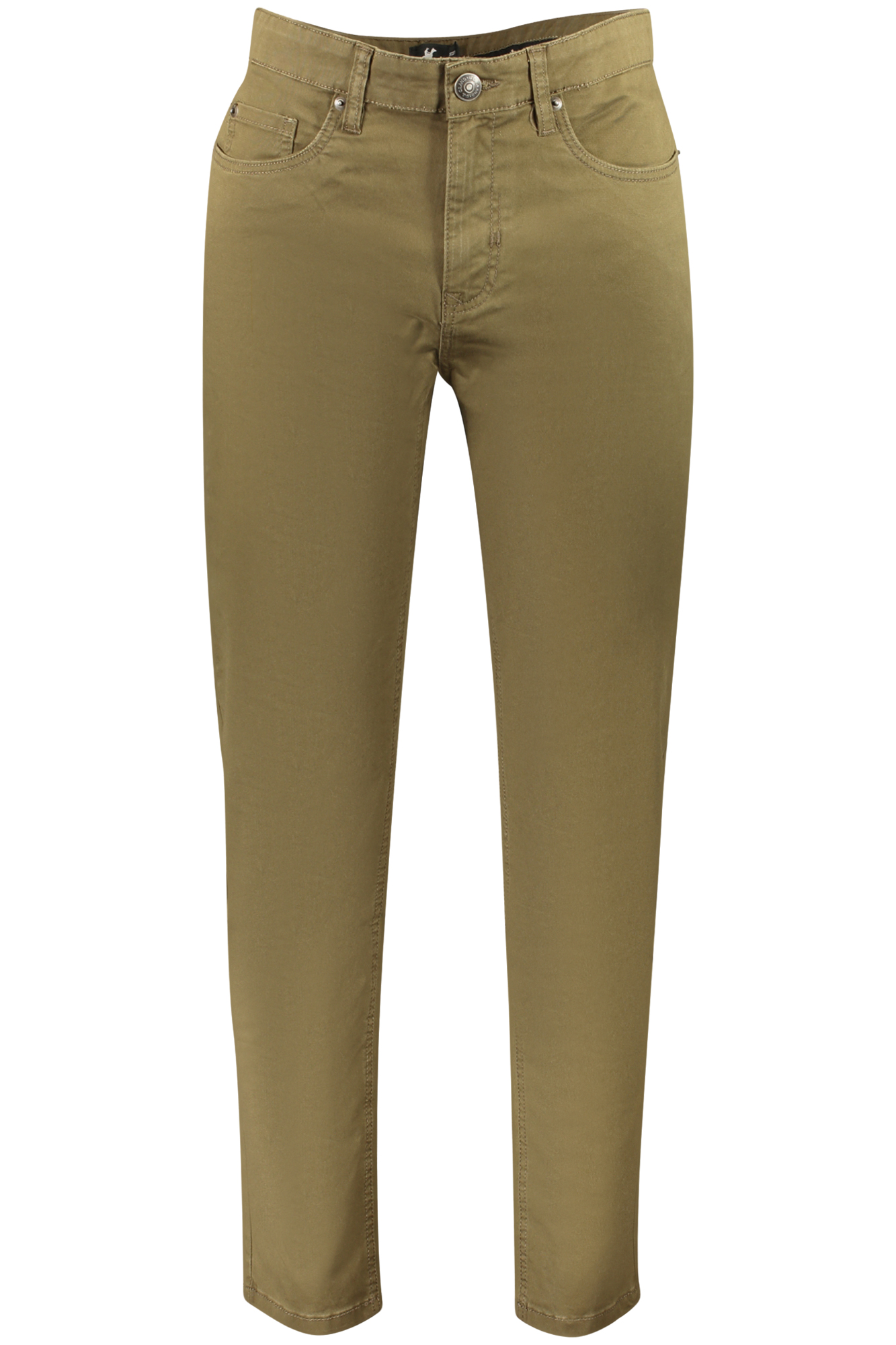 PANTALONI 5 TASCHE, BOTTONE E ZIP, LOGO