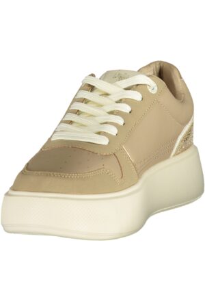 CALZATURA SPORTIVA CON LACCI, DETTAGLI A CONTRASTO IN BIANCO/ORO, PLANTARE REMOVIBILE, STAMPA, LOGO