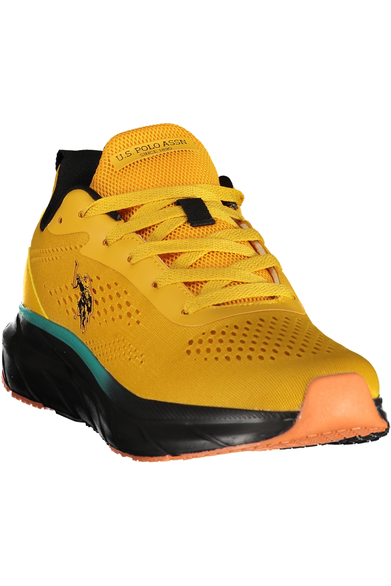 CALZATURA SPORTIVA CON LACCI, DETTAGLI A CONTRASTO IN VERDE/NERO/ARANCIONE, PLANTARE REMOVIBILE, APPLICAZIONE, LOGO